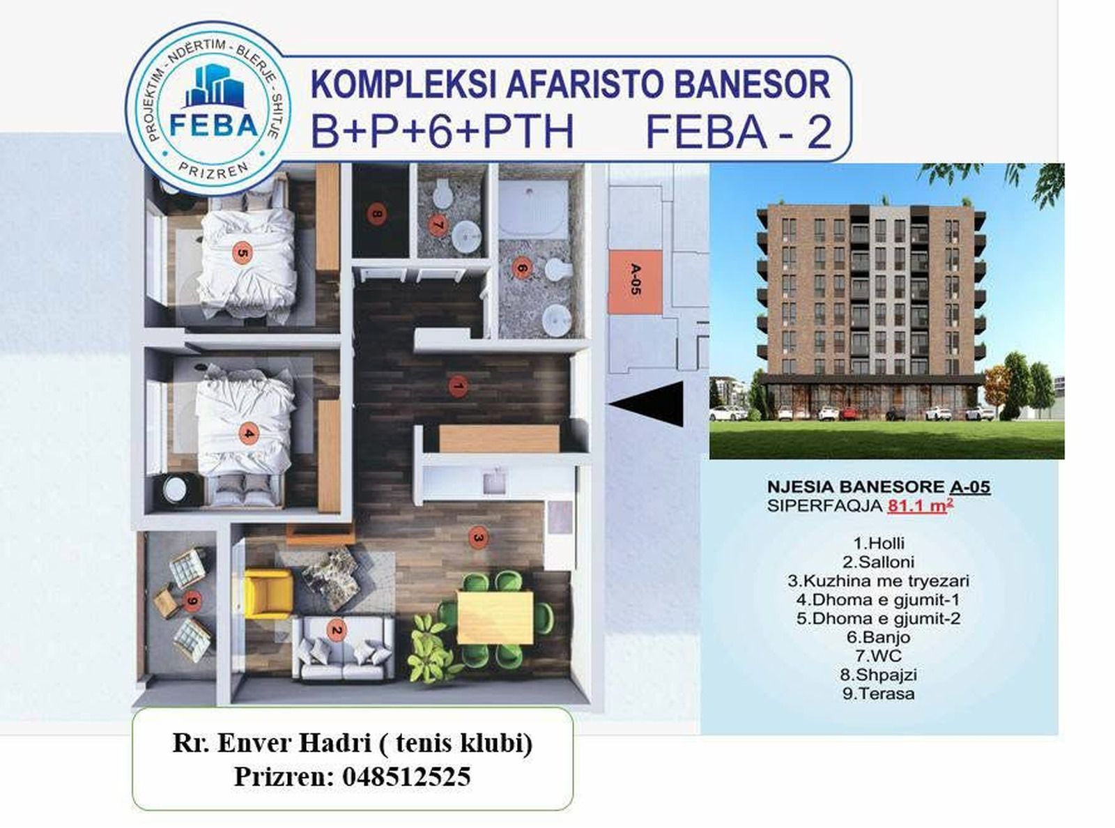 Banesat janë në Rr Enver Hadri ( te fusha e tenisit) Banesat janë prej katit 1 deri 6 të ndërtimit,