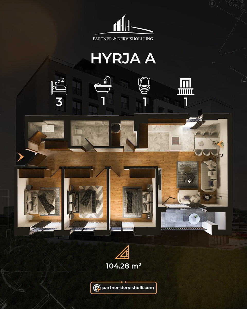 RESIDIO 7 Jetesa që meritoni! Kati 1 Objekti është ndërtuar me standarde të larta teknike dhe fizike. • Fasada është e ventiluar me izolim termik. • Dritaret janë PVC/alumin me xham dopio dhe izolim të mirë akustik e termik. • Muret ndarëse dhe të jashtme ofrojnë qëndrueshmëri dhe komoditet të lartë banimi. • Dyshemetë janë të realizuara me pllaka gres cilësore. • Në garazhe është përdorur fer beton. • Objekti përfshin hyrje/dalje të kontrolluara në garazh dhe rampë. • Ashensori është modern dhe funksional. • Ndriçimi është automatik. • Ka sinjalizim të evakuimit. • Ofron video monitorim 24h. • Sistemi i mbrojtjes nga zjarri është sipas sta...