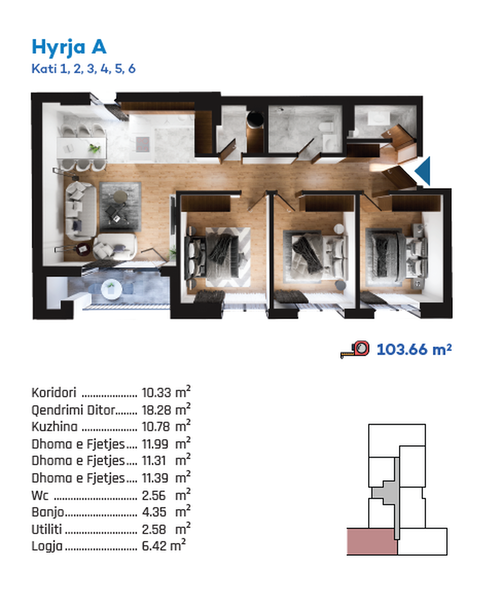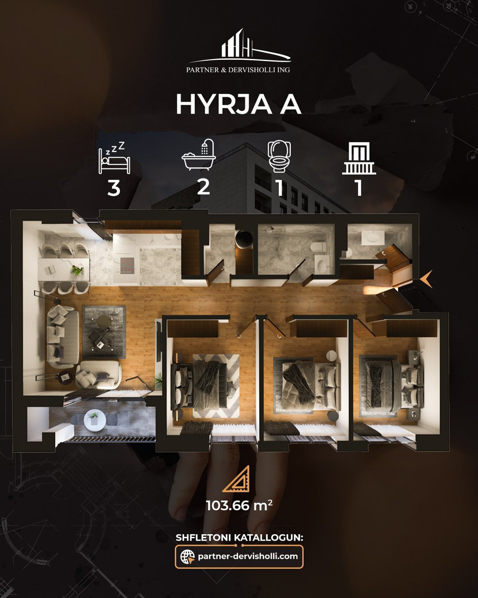 RESIDIO 7 Jetesa që meritoni! Kati 5 Objekti është ndërtuar me standarde të larta teknike dhe fizike. • Fasada është e ventiluar me izolim termik. • Dritaret janë PVC/alumin me xham dopio dhe izolim të mirë akustik e termik. • Muret ndarëse dhe të jashtme ofrojnë qëndrueshmëri dhe komoditet të lartë banimi. • Dyshemetë janë të realizuara me pllaka gres cilësore. • Në garazhe është përdorur fer beton. • Objekti përfshin hyrje/dalje të kontrolluara në garazh dhe rampë. • Ashensori është modern dhe funksional. • Ndriçimi është automatik. • Ka sinjalizim të evakuimit. • Ofron video monitorim 24h. • Sistemi i mbrojtjes nga zjarri është sipas sta...