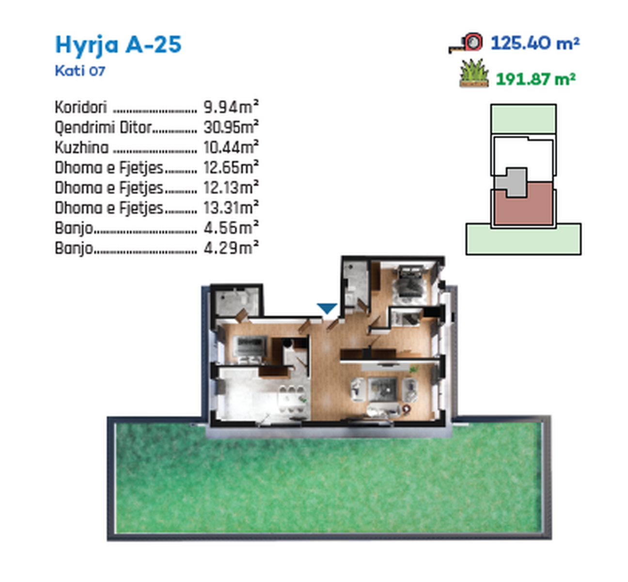 RESIDIO 7 Jetesa që meritoni! Penthouse - Kati 7 me një tarracë prej 191.87 m²! Objekti është ndërtuar me standarde të larta teknike dhe fizike. • Fasada është e ventiluar me izolim termik. • Dritaret janë PVC/alumin me xham dopio dhe izolim të mirë akustik e termik. • Muret ndarëse dhe të jashtme ofrojnë qëndrueshmëri dhe komoditet të lartë banimi. • Dyshemetë janë të realizuara me pllaka gres cilësore. • Në garazhe është përdorur fer beton. • Objekti përfshin hyrje/dalje të kontrolluara në garazh dhe rampë. • Ashensori është modern dhe funksional. • Ndriçimi është automatik. • Ka sinjalizim të evakuimit. • Ofron video monitorim 24h. • Si...