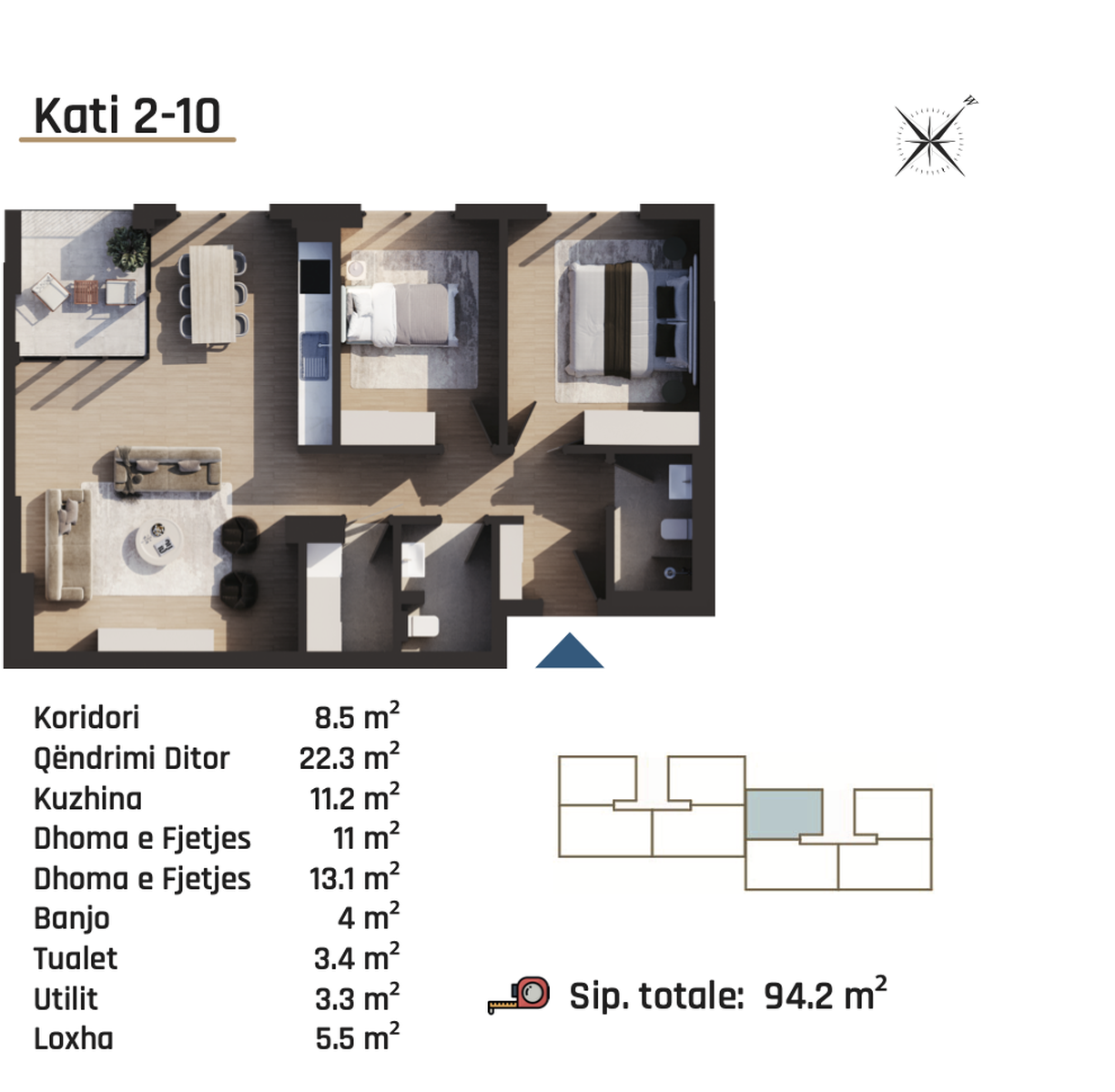 ✔ Ashensorë modernë, garazha private dhe depo individuale.